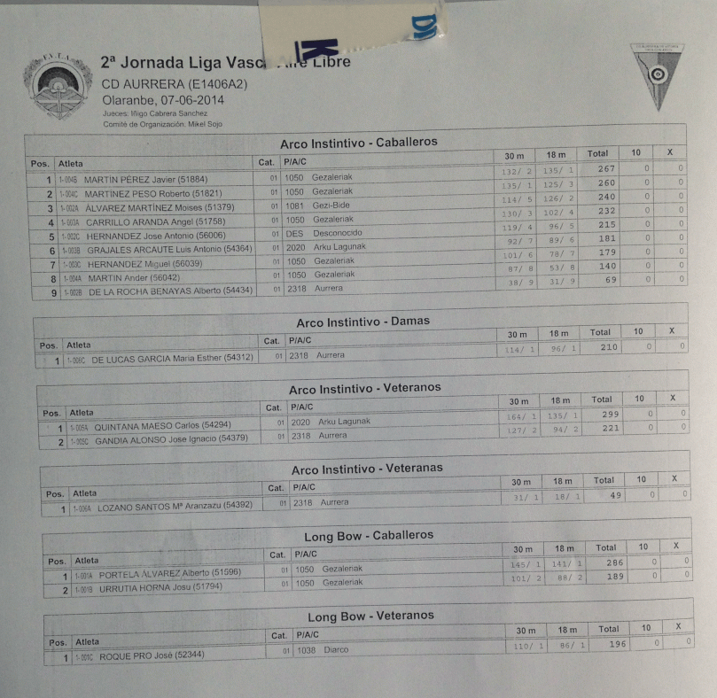 13 junio, 2014 2112 × 2058 Resultados 2ª Jornada de Liga Vasca de Aire Libre 2014.(Vitoria)