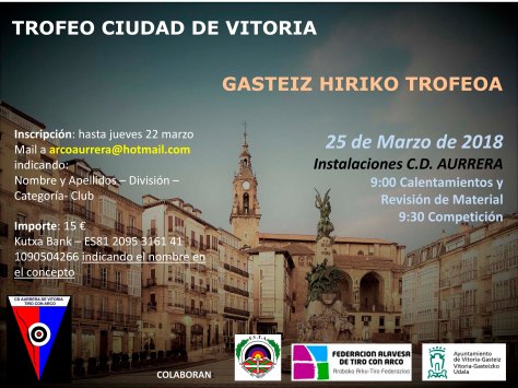 El C.D. Aurrera de Vitoria de Tiro con Arco organiza esta tirada al aire libre, en colaboración con la Federación Alavesa, el ayuntamiento de Vitoria y la FVTA.